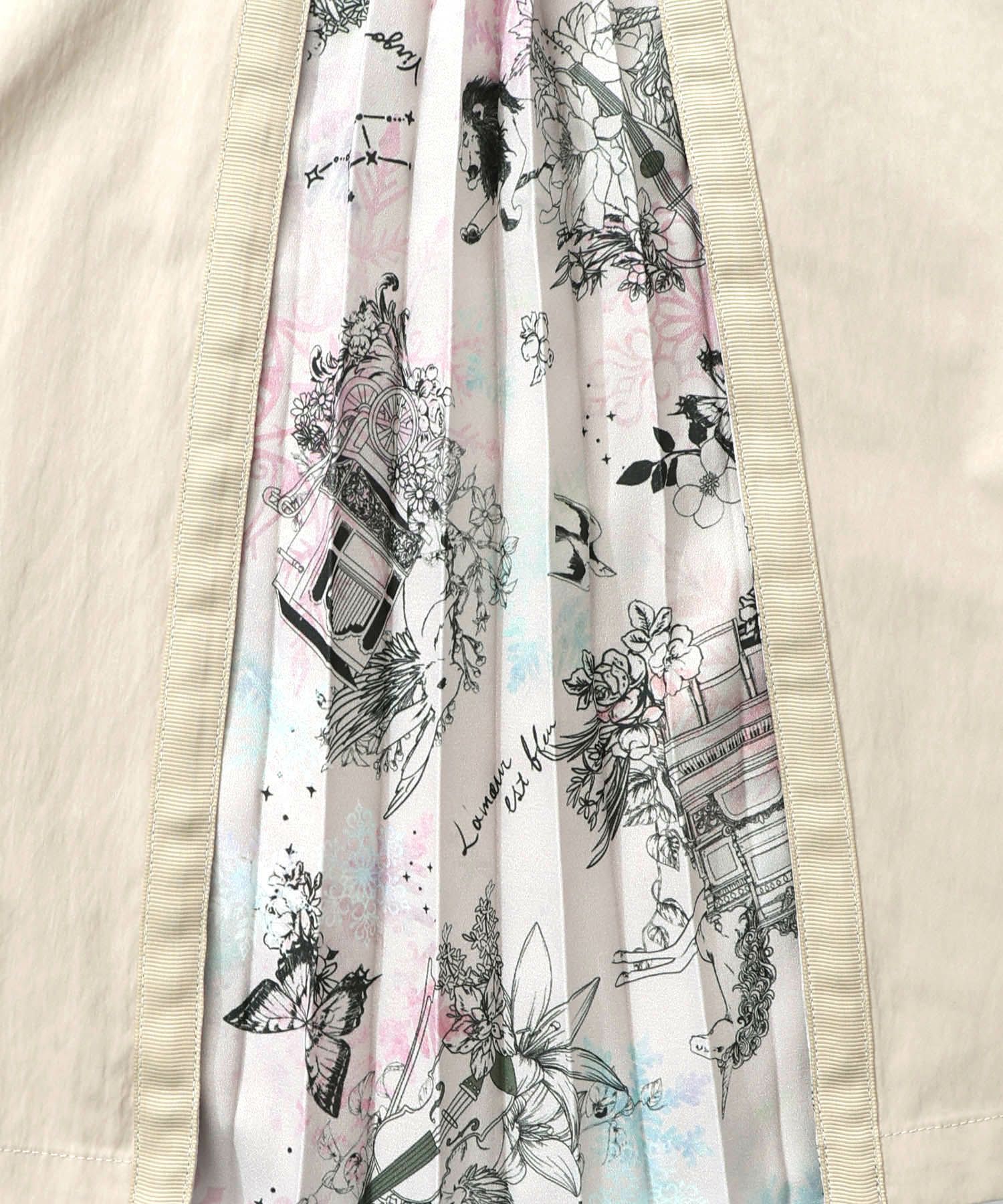 プリーツ生地に描かれた動物や蝶々、楽器などの華やかなプリントデザインが出現!