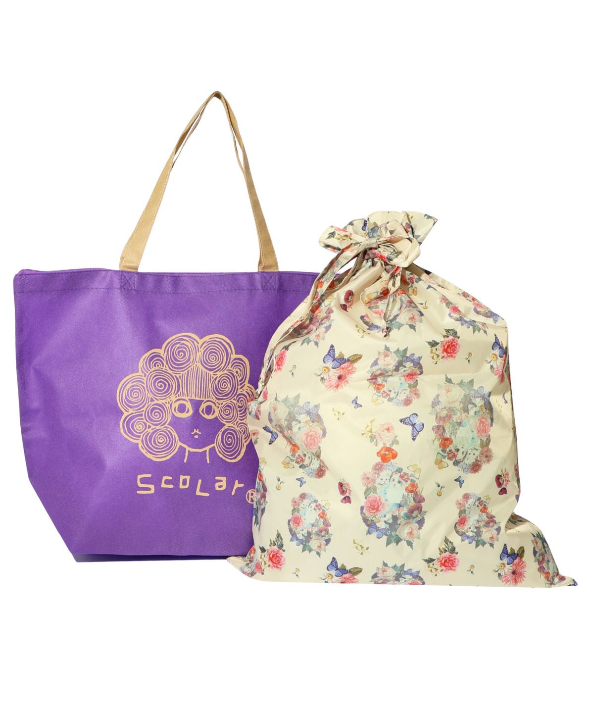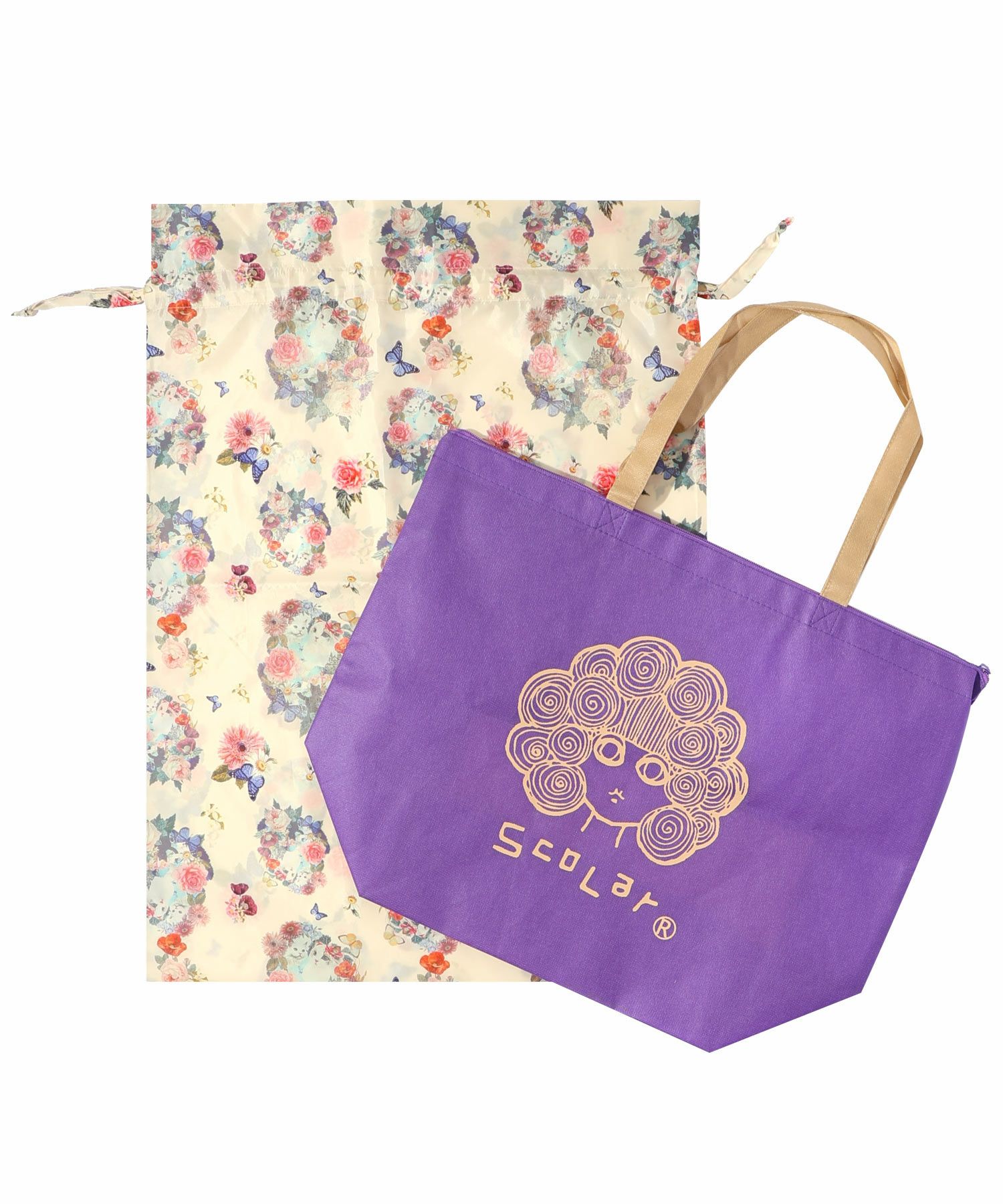『おめでとうや、ありがとうの気持ちを届けたい💝』 大切な方に贈るプレゼントのための、ギフトラッピングキットが新しくなって登場!! アウターやシューズなど少し大きめの贈り物にオススメなLサイズ。 【ScoLarのショッピングバッグ+巾着】の計2点がセットになっています。 ご自身で包むことでより心のこもったspecialな贈り物に🎁 新しくなった巾着袋は、ネコやお花や蝶々を散りばめたキュートでメルヘンな総柄デザイン🎶 左右の紐をしぼって結ぶだけで簡単かわいいギフトラッピングが完成です。 包装紙は破って捨ててしまうケースが多いですが… しっかりとした素材なのでその後も多様な用途で再利用できる点が嬉しい◎ 旅行の時に下着やこまごました物の整理や、たくさん集めてお部屋のアイテムをおしゃれに収納したり使い道いろいろ! 特別な方へのギフトにぜひご利用ください🦋