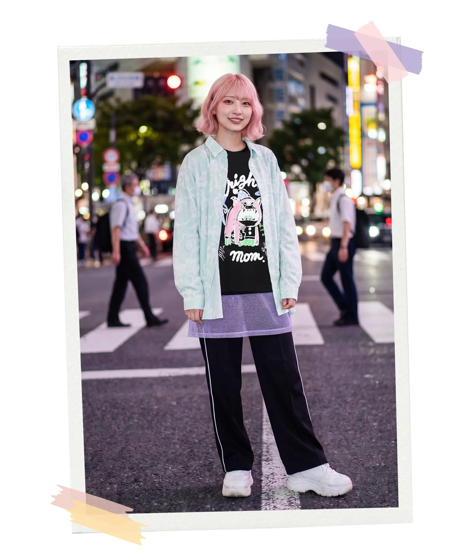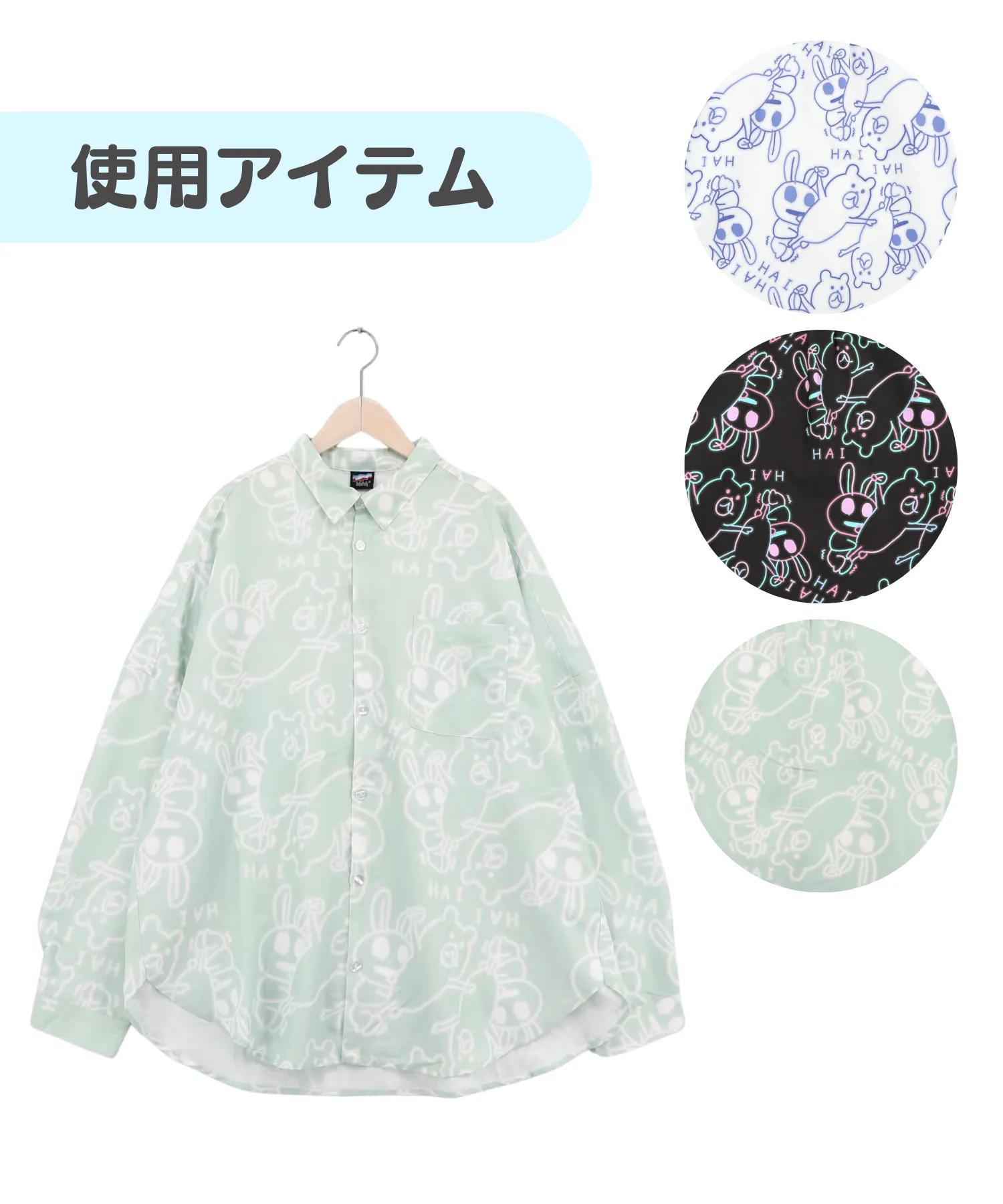 パープル×ミントカラーのシャツで