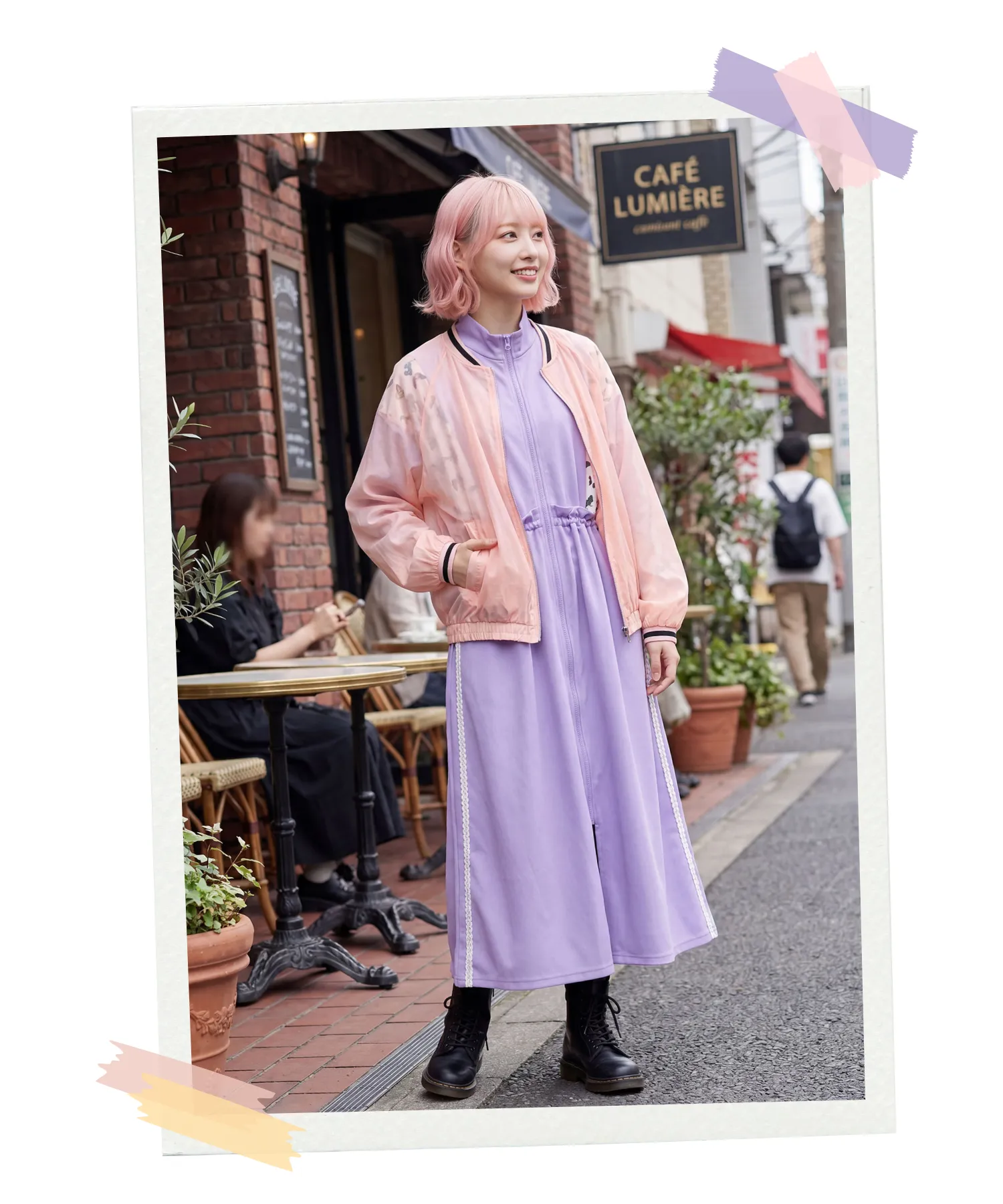 スポーティなブルゾンとワンピースで