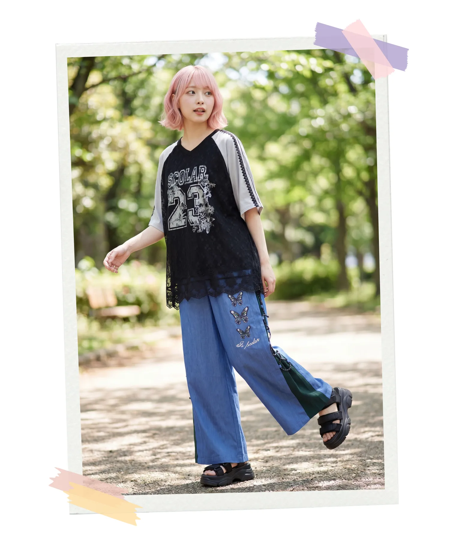 ユニフォーム風のレースを重ねた